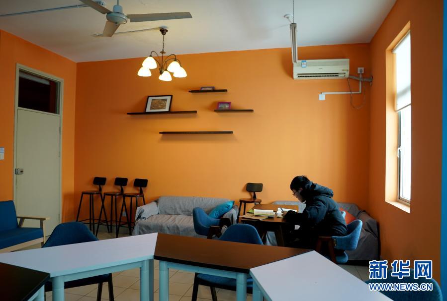 12月30日,在华东师范大学学生宿舍楼内,作为公共活动区域的学生活动室的空调开放,供学生们自习。
