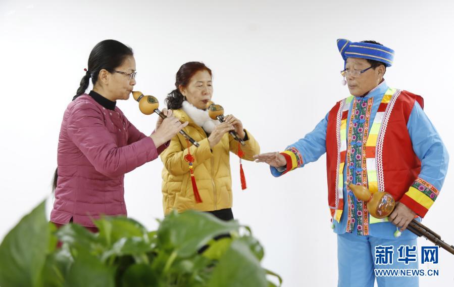12月30日,在河北省邢台市襄都区西门里街道办事处顺德北社区康宁养老服务中心托老所,老人在学习葫芦丝吹奏。