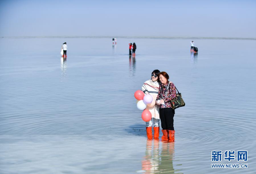 游客在茶卡盐湖“天空之镜”景区游玩(9月23日摄)。
