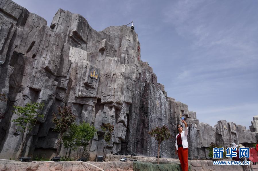 6月9日,一名游客在青海卓扎滩原生态景区拍照留念。