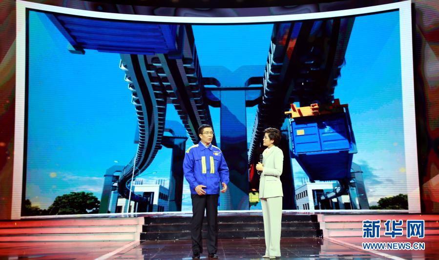 山东港口集团青岛港“连钢创新团队”带头人张连钢在“时代楷模”发布仪式上与主持人交流(12月25日摄)。