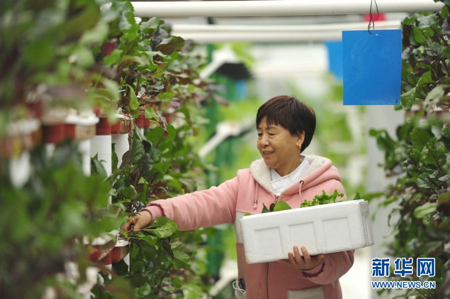 12月30日,游客在河北省河间市一家现代农业园区体验蔬菜采摘。