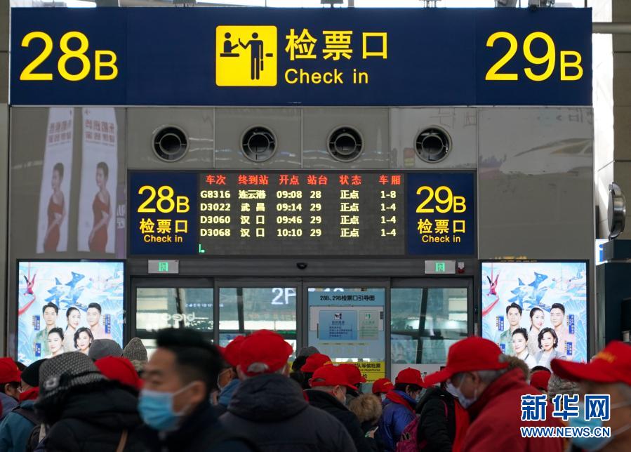 12月30日,乘坐G8316次列车的旅客在上海虹桥火车站内排队等待检票。