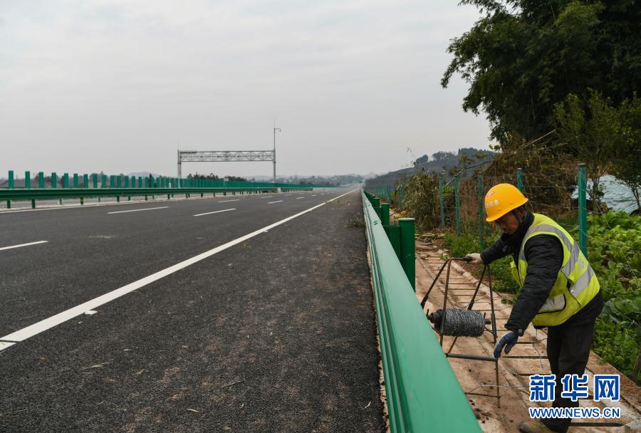 12月30日,在四川省资阳市雁江区保和镇,工人在成资渝高速公路进行收尾工作。