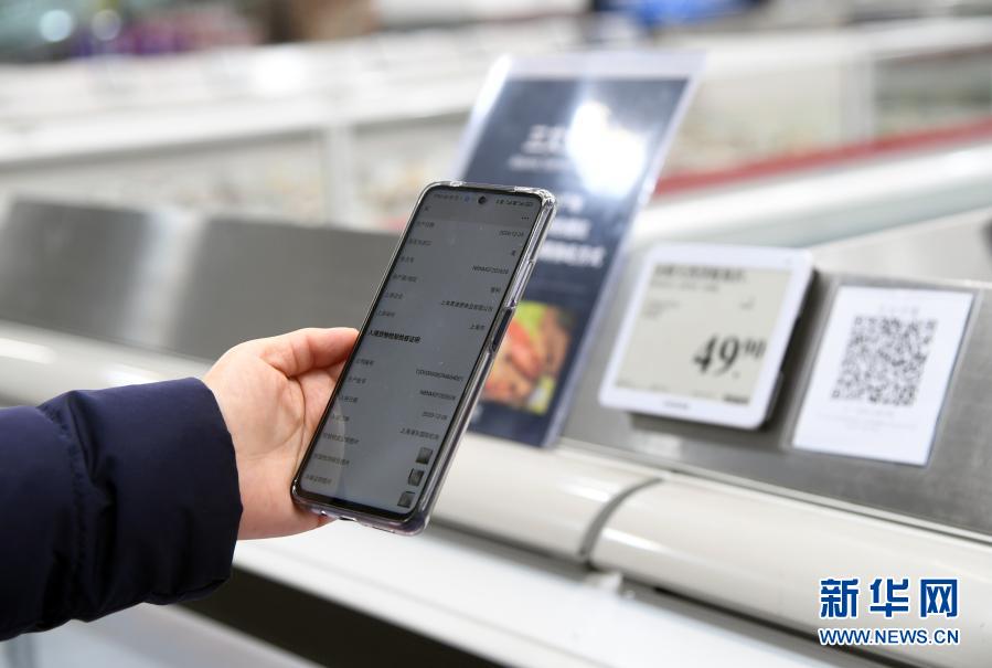 在北京市顺义区后沙峪山姆会员商店,市民通过扫描二维码的方式了解冷链产品的来源、核酸检测证明等信息(12月29日摄)。新华社记者 任超 摄