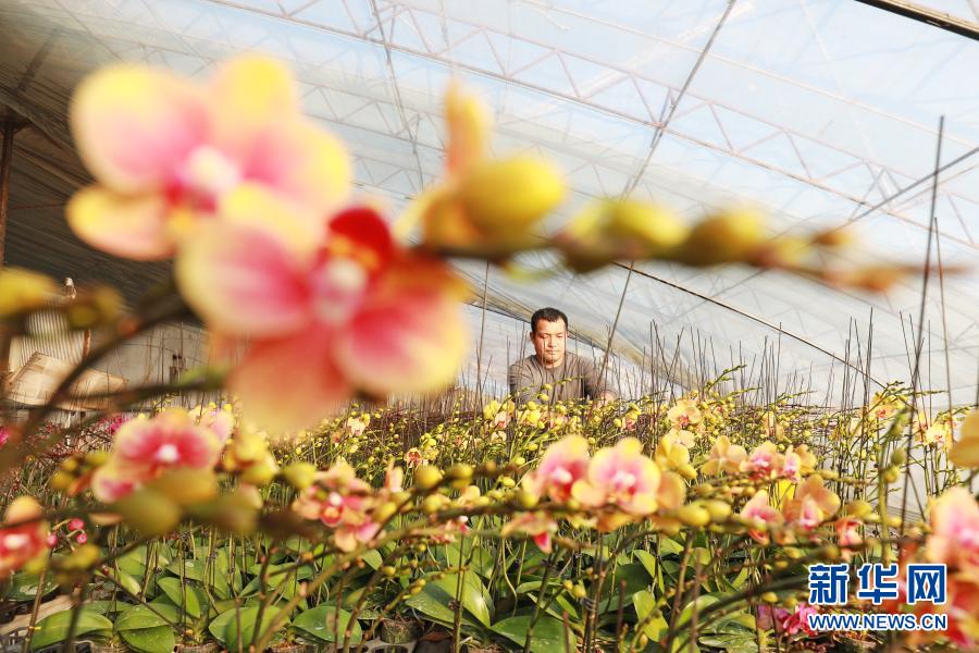 元旦前夕,河北省滦南县宋道口镇东清水村花卉种植基地的3万多株蝴蝶兰陆续开放,花农忙着组盆、外运,赶在节前上市。