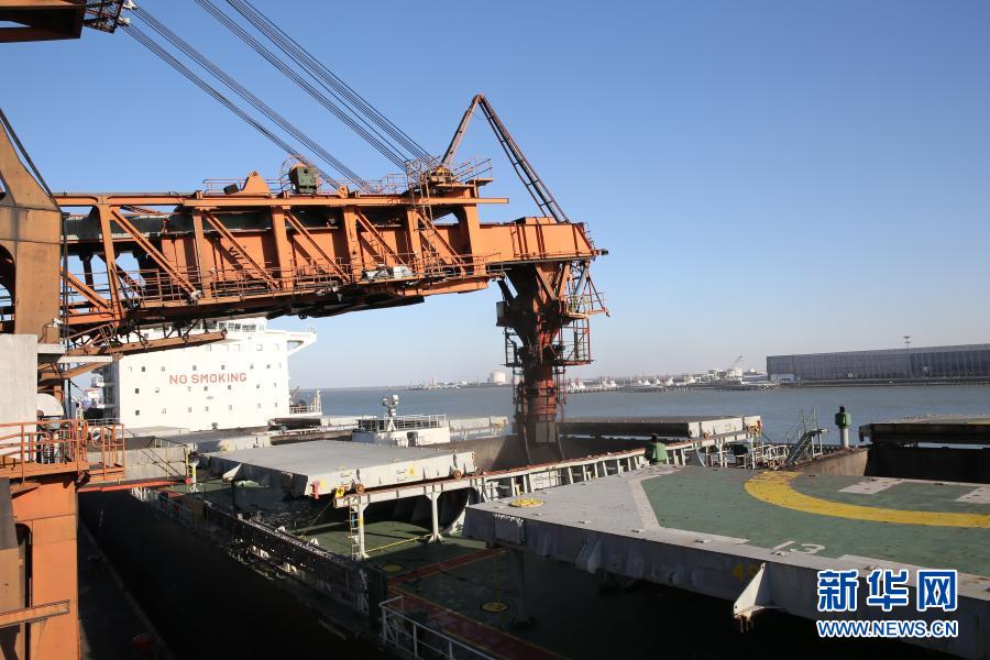 12月30日,一艘货轮停靠在黄骅港煤炭港区装货。新华社发(苑立伟 摄)