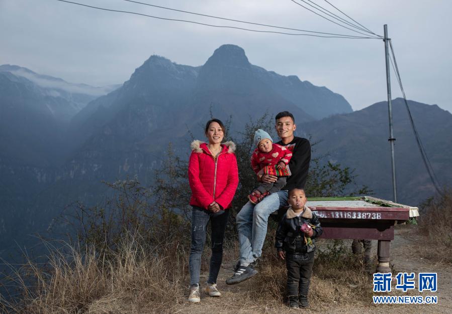 12月23日,某色苏不惹和妻子杨菲、两个孩子在一起。新华社记者 江宏景 摄