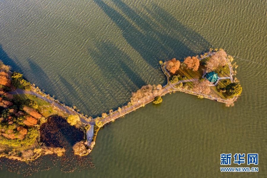 12月30日拍摄的武汉东湖“老鼠尾”风光(无人机照片)。