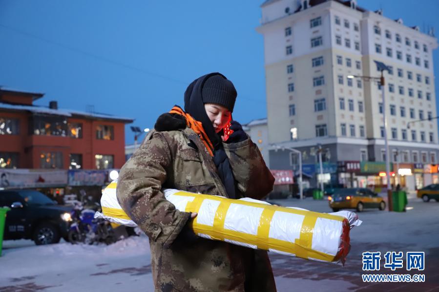 在黑龙江省漠河市,快递员吕慧在派送快递(12月29日摄)。新华社记者 黄腾 摄