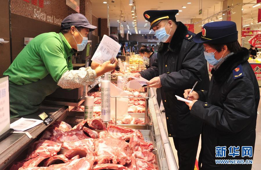 12月30日,河北省河间市市场监督管理局工作人员在一家超市检查食品安全。