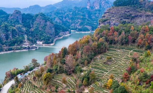 这是12月9日拍摄的福建省三明市泰宁县梅口乡的茶园及群山。