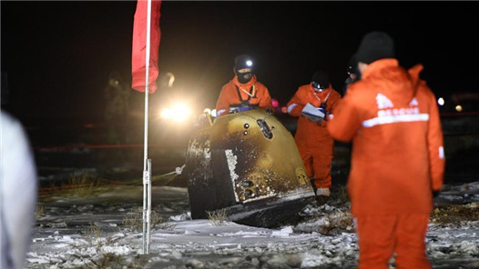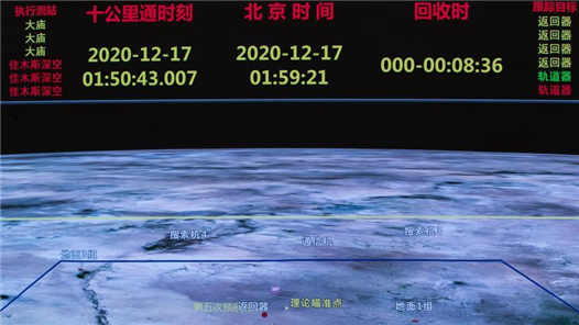 12月17日凌晨,嫦娥五号返回器携带月球样品,采用半弹道跳跃方式再入返回,在内蒙古四子王旗预定区域安全着陆。