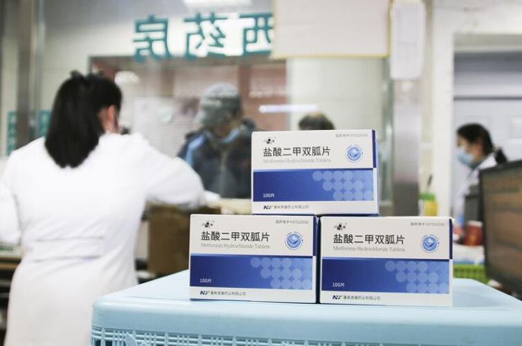 这是12月14日在吉林省长春市朝阳区人民医院药房内拍摄的盐酸二甲双胍片药物。