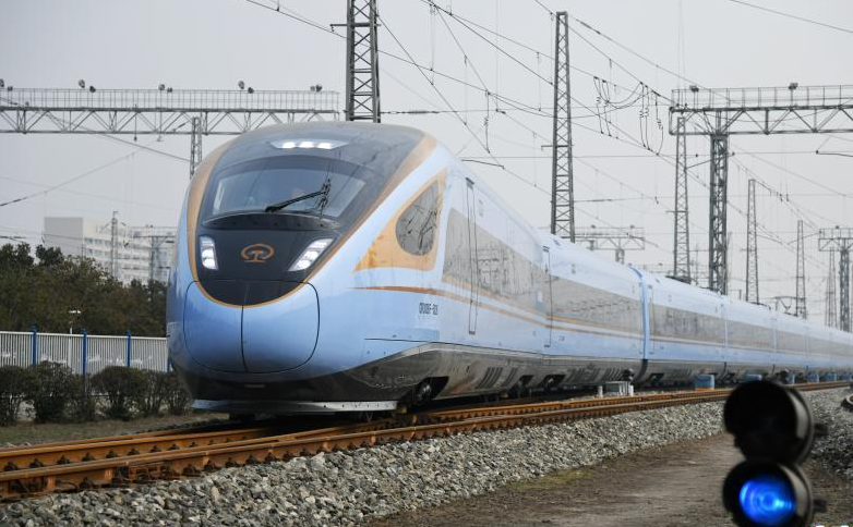 12月15日,CR300BF型“复兴号”动车组抵达中国铁路西安局集团有限公司西安动车段,担负即将开通的银西高铁旅客运输任务。