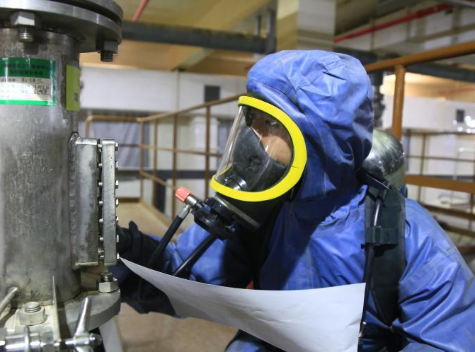 酒泉卫星发射中心加注操作手对高分九号04星运载火箭进行燃料加注(8月5日摄)。