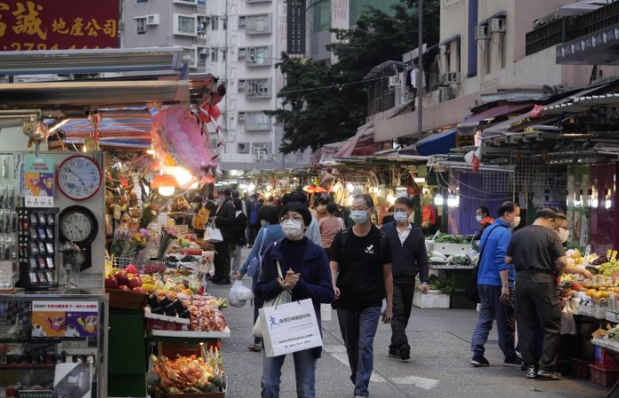12月28日,在香港旺角,市民佩戴口罩逛露天市场。