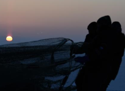 新疆阿勒泰地区福海县乌伦古湖每年12月中下旬进入“冬捕”季。乌伦古湖是中国十大内陆淡水湖之一,冬季冰上大拉网捕鱼是乌伦古湖的传统捕鱼方式,场面壮观。