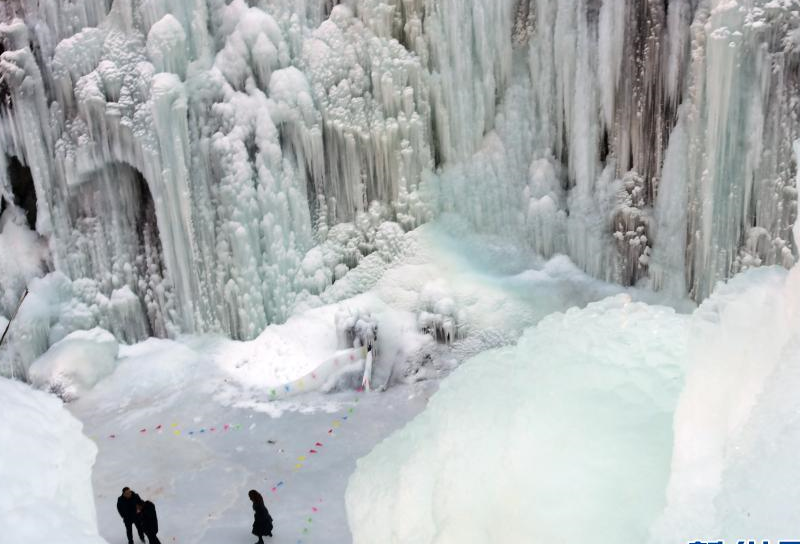 12月26日,游客在大墩峡景区欣赏冰瀑。寒冬时节,甘肃省积石山保安族东乡族撒拉族自治县大墩峡景区出现冰瀑景观,造型各异的冰瀑、冰挂、冰柱等把游客带入了迷人的冰雪世界。
