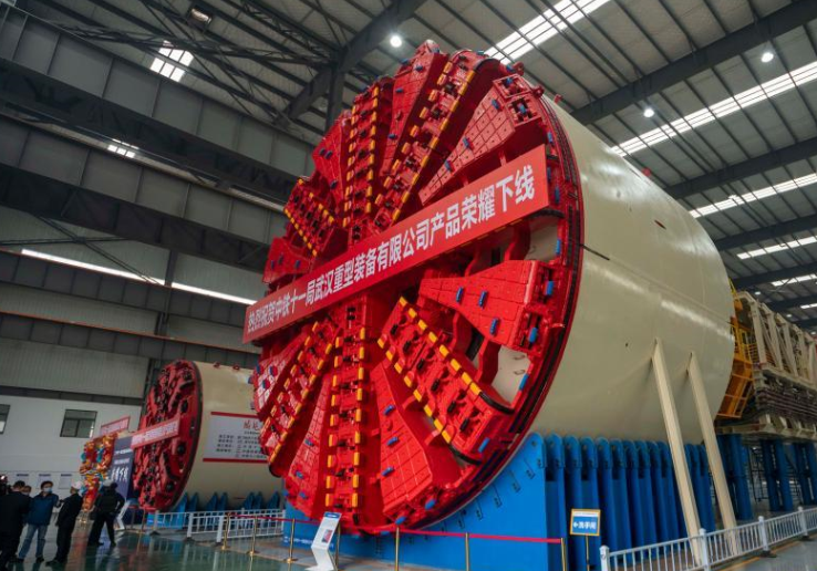 当日,在武汉市黄陂区临空产业园中铁十一局武汉重型装备有限公司,两台大型盾构机正式下线,标志着该公司正式落成投产。该公司是中国铁建华中盾构基地。盾构基地占地面积100亩,分两期进行规划建设。