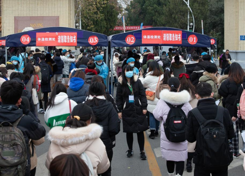 2021年全国硕士研究生招生考试今天(12月26日)开考。全国报考人数达377万人,再创历史新高。为每一位考研人加油,愿每份努力都有一份收获,高分上岸。图为2020年12月26日,在山东省烟台市福山区崇文中学考点,考生在等候进入考场。