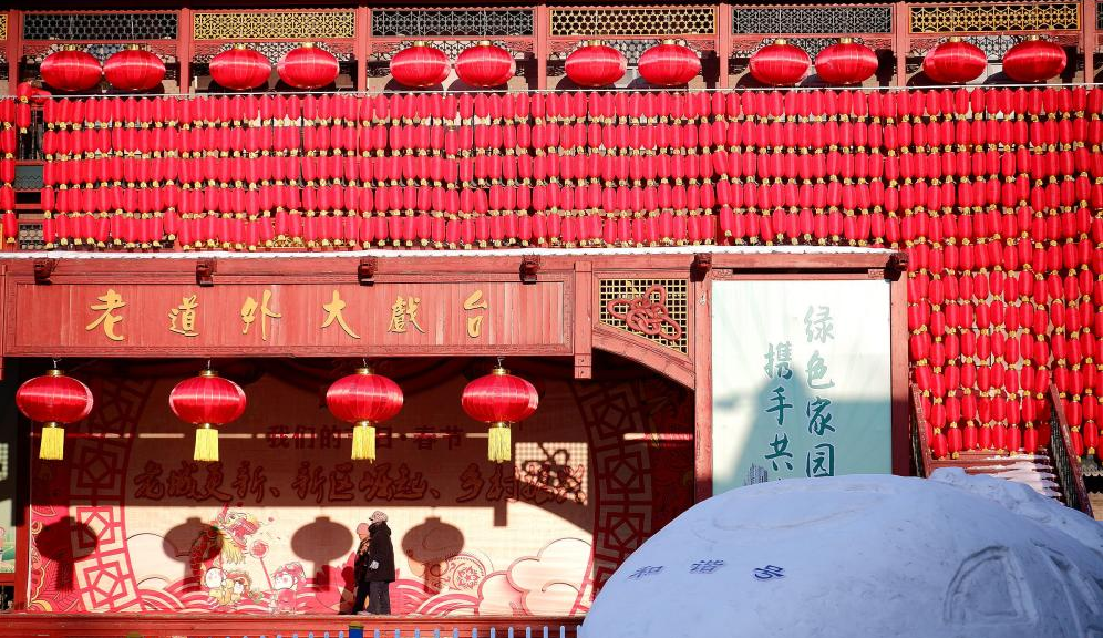 12月25日,黑龙江哈尔滨,市民在中华巴洛克历史文化街区观赏红灯笼。新年临近,当地大街小巷挂起了红灯笼,张灯结彩,年味十足。