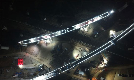 12月25日凌晨,由中铁十一局承建的常(德)益(阳)长(沙)铁路“动走右线2号特大桥连续梁”成功完成转体。22日凌晨,该项目成功实施了“动走左线特大桥连续梁”的转体。至此,常益长铁路两处千吨转体梁均成功转体,为后期铁路主线铺轨施工打通道路。