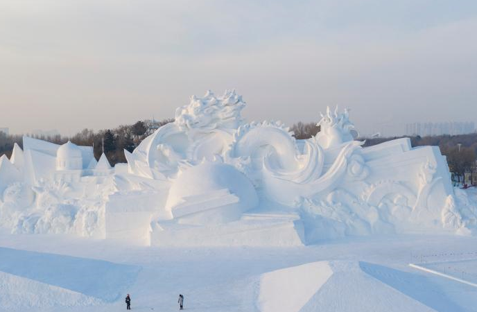近日,第三十三届哈尔滨太阳岛国际雪雕艺术博览会开园迎客。走进“雪博会”就像走进了“雪雕博物馆”,人们在园区内观赏游玩,畅享冬日“雪趣”。