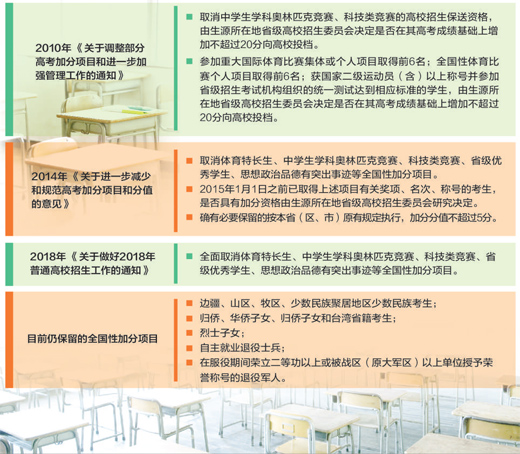 全面取消体育特长生、中学奥赛、科技类竞赛等全国性加分