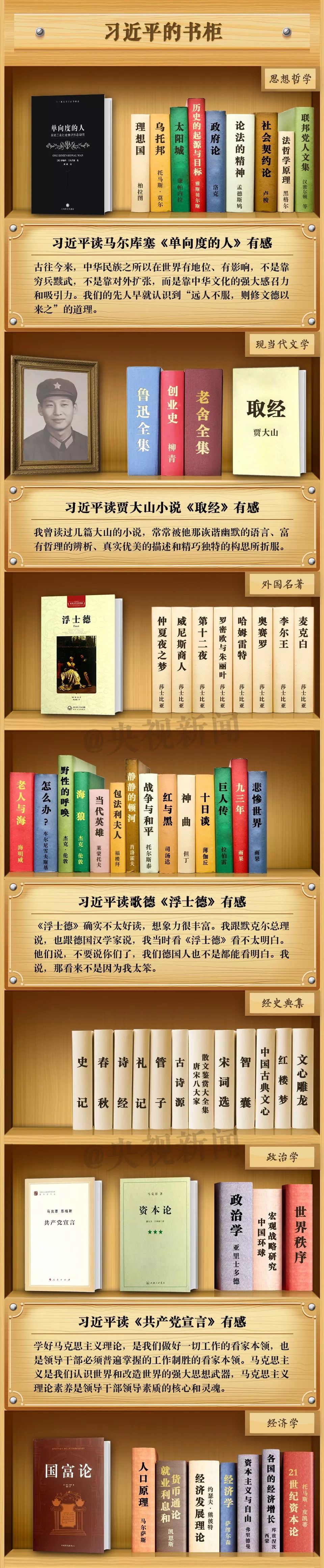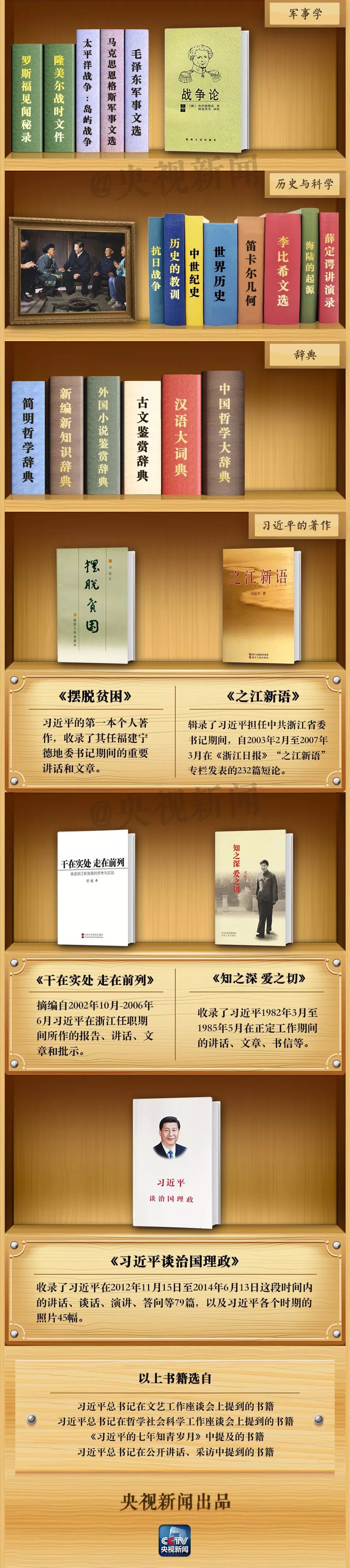 在这个节日,央视新闻定制了习近平总书记的“书柜”,来看看总书记的“书单”和读书感悟吧。