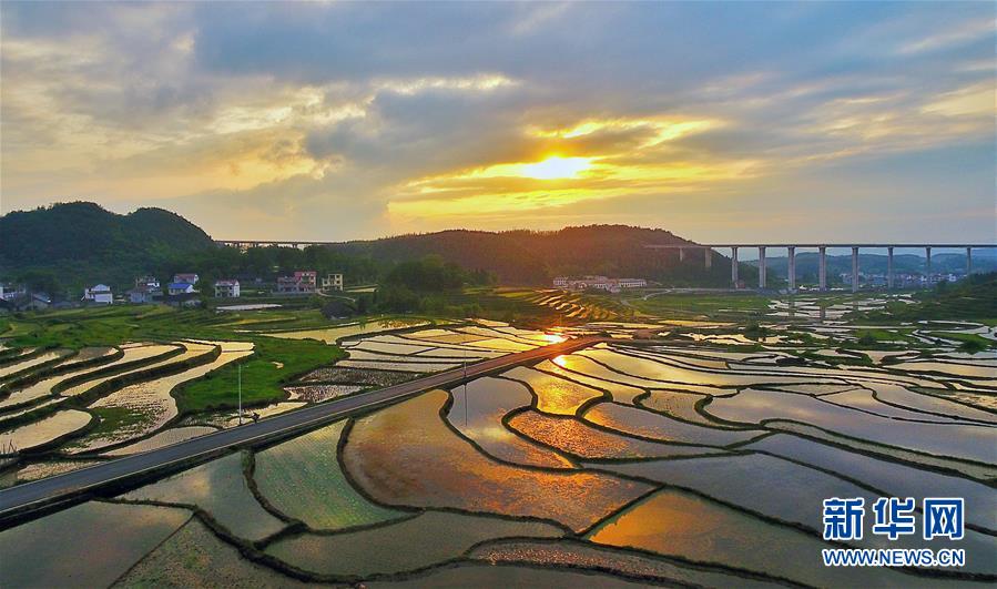 梯田夕照美如画