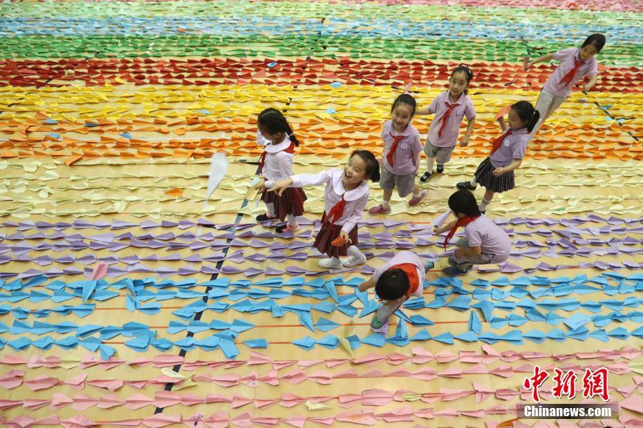 中国儿童成功创造“最长的纸飞机队列”世界纪录