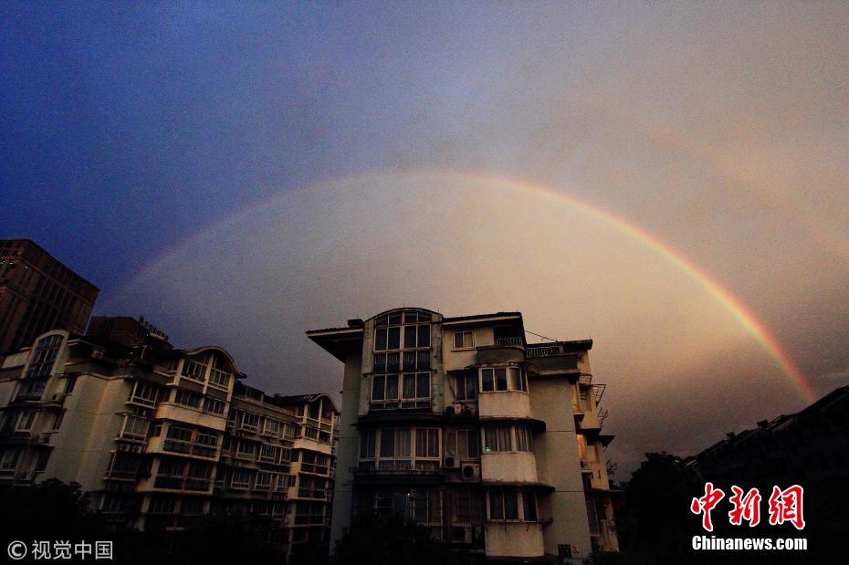 冷空气侵袭浙江绍兴 暴雨过后现靓丽彩虹