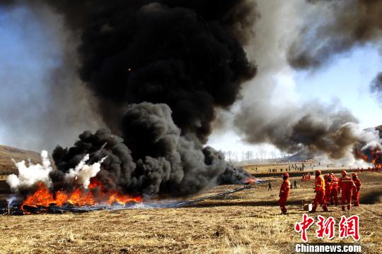 青海举行森林草原防火应急演练 浓烟四起场面壮观
