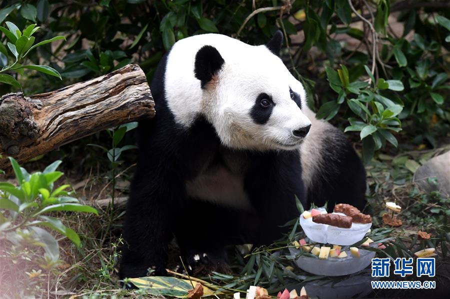 广西柳州动物园为大熊猫“明浜”举办生日会