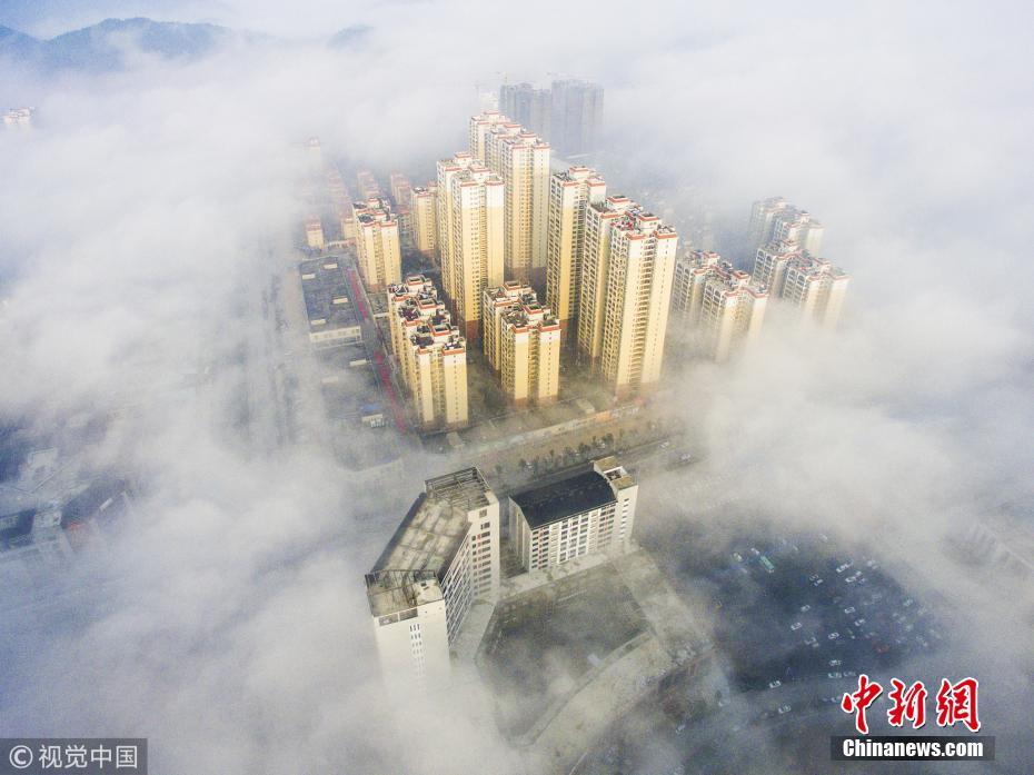 桂林现平流雾景观 云雾缭绕宛如仙境