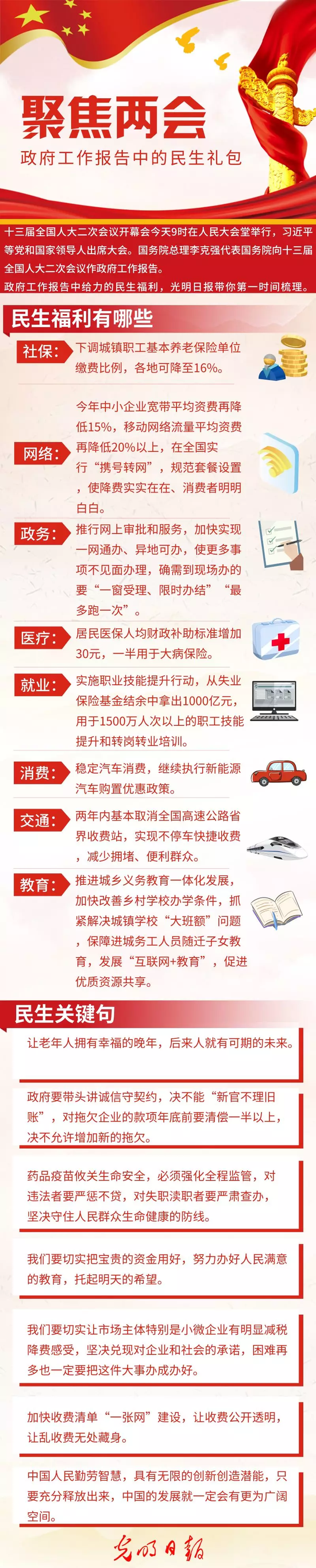 政府工作报告中给力的民生福利,光明日报带你第一时间梳理。