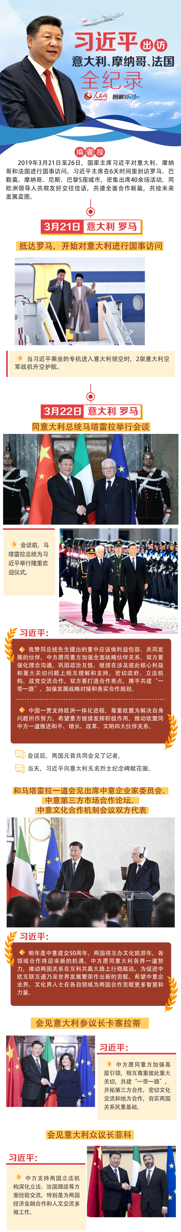 习近平出访意大利、摩纳哥、法国全纪录
