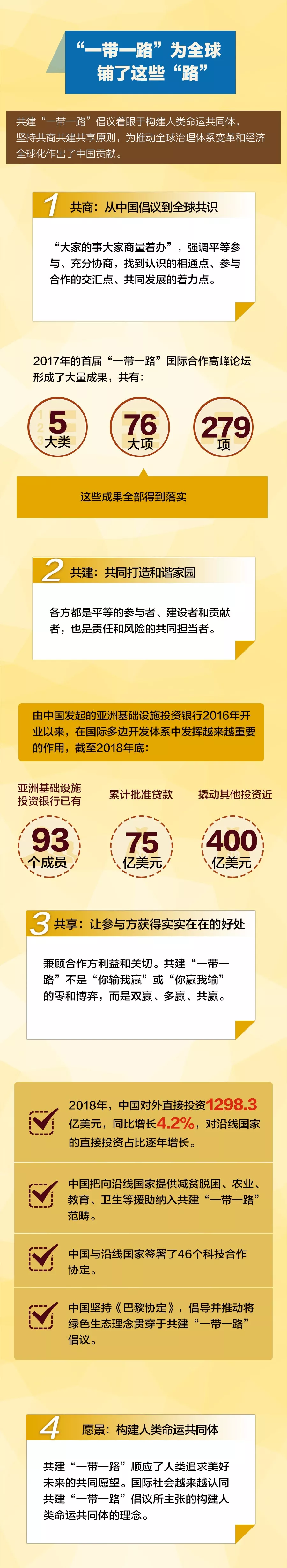 报告以进展、贡献和展望三个部分,阐述了共建“一带一路”倡议取得的成效、为推动全球治理体系变革和经济全球化作出的贡献,以及未来的发展方向。通过一张长图,一起了解报告中的亮点!