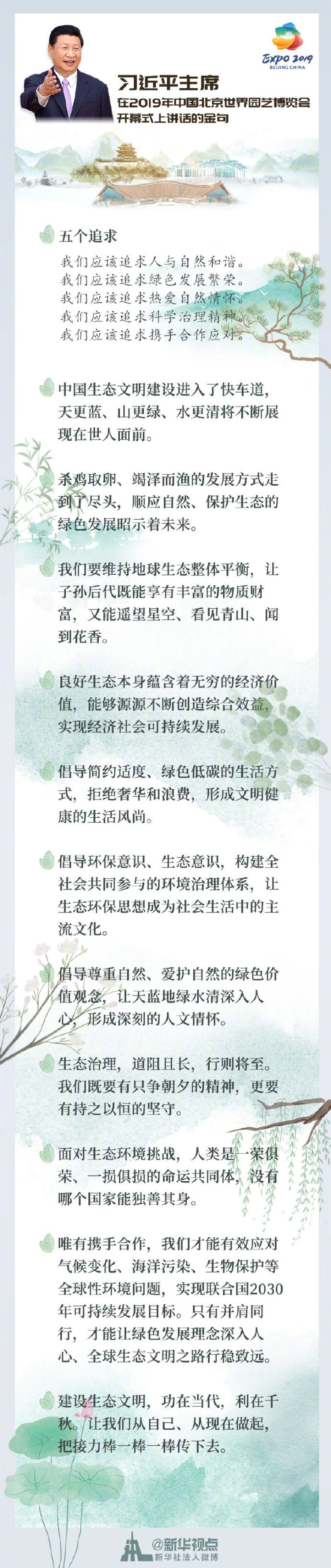 同筑生态文明之基,同走绿色发展之路,正是这次北京世园会向世界传递的明确信息。