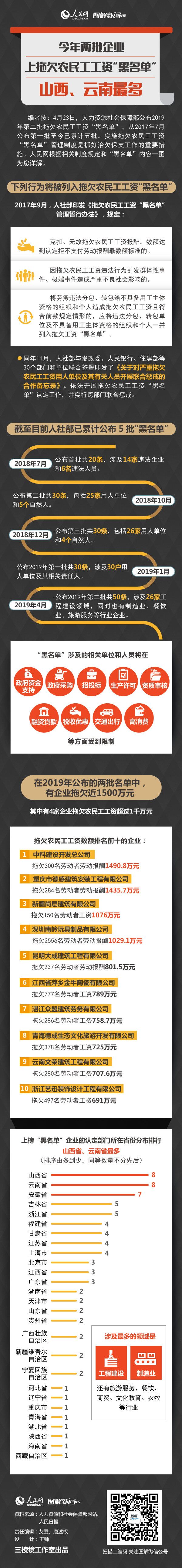 今年两批企业上拖欠农民工工资“黑名单”,山西、云南最多