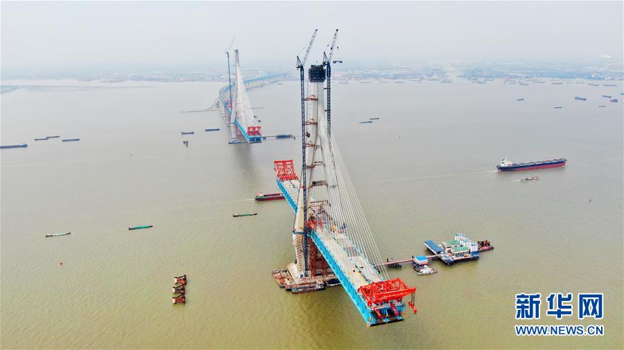 沪通长江大桥南主塔突破300米