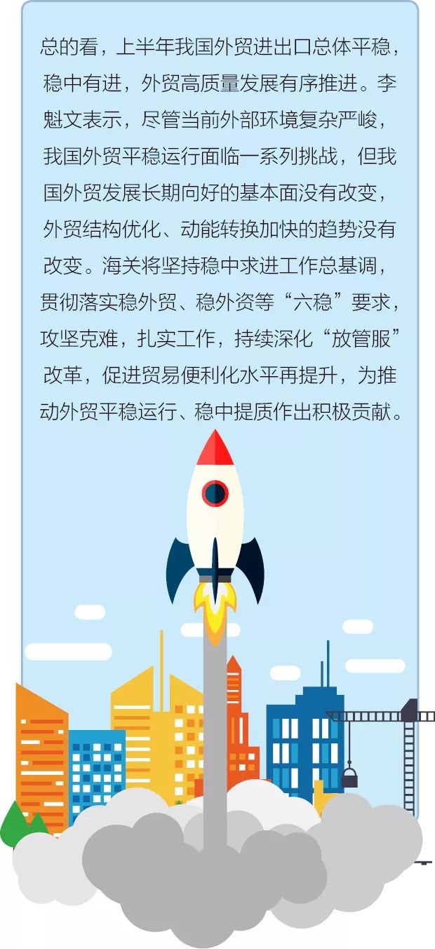 李魁文:谢谢你的提问。今年以来,世界经济和贸易增长放缓,中美经贸摩擦影响持续显现,我国对外贸易仍然表现出很强的韧性,上半年外贸进出口继续保持了平稳增长的发展态势。这得益于党中央、国务院的正确领导,得益于国内经济稳中有进、高质量发展持续推进,也得益于国家推动新一轮高水平对外开放,得益于各地区、各企业的攻坚克难,共同努力。