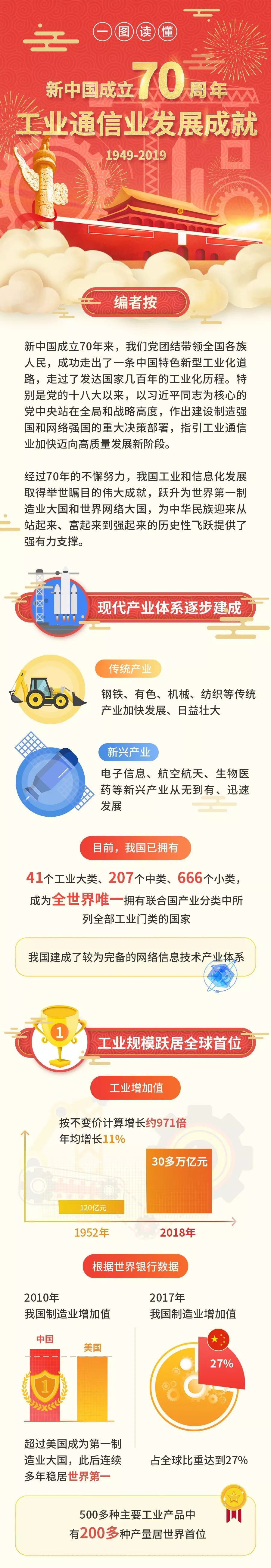 一图读懂!新中国成立70周年工业通信业发展成就
