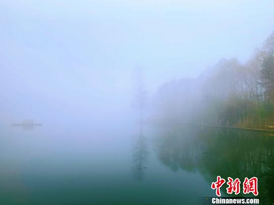 甘肃宕昌官鹅沟诗意秋景呈“水天一色”