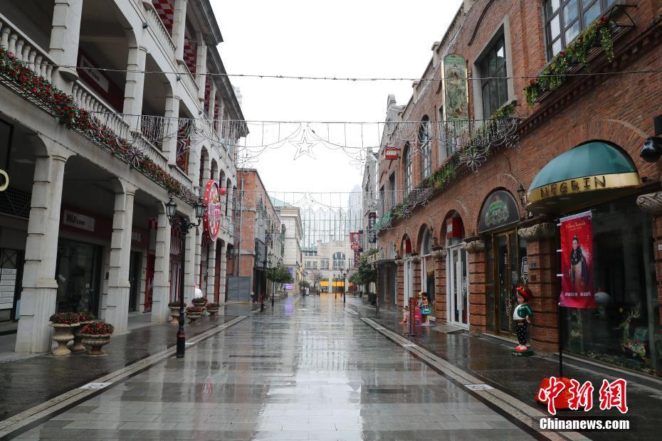 武昌楚河汉街上空无一人。中新社记者 张畅 摄