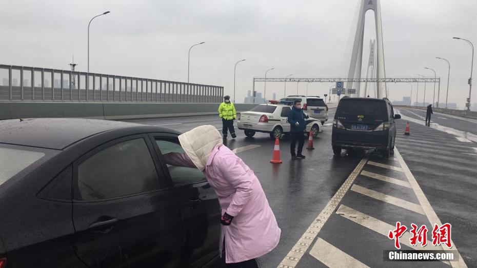 武汉三环内(含三环)过江桥梁通行实施体温检测管控。中新社记者 孙家军 摄