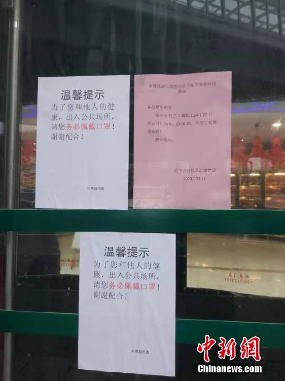 武汉部分超市贴出春节期间营业通知。中新社记者 艾启平 摄