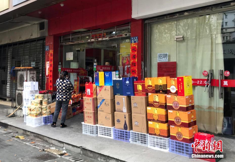 一商店老板王大瑞将货品拿出店外售卖。中新社记者 张芹 摄