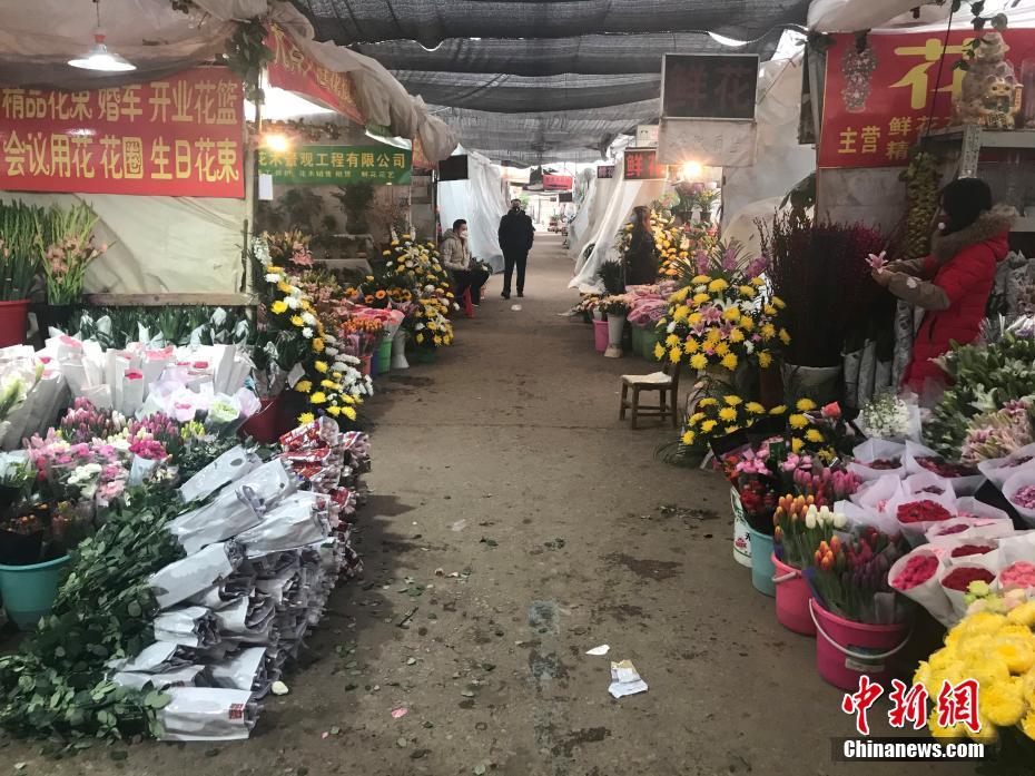 位于武汉市洪山区雄楚大道上的一家花卉市场内,几家花店仍在营业,但顾客寥寥。中新社记者 裴春梅 摄
